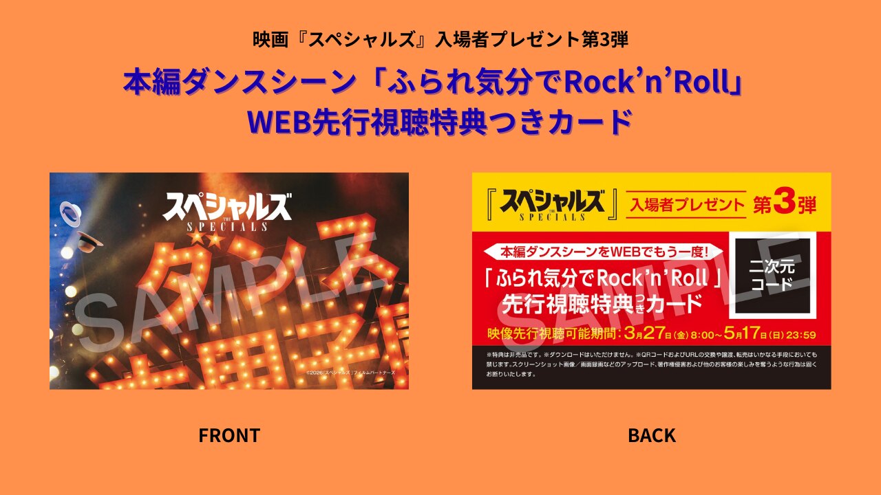 映画『スペシャルズ』入場者プレゼント第3弾・名称:本編ダンスシーン「ふられ気分でRock'n'Roll」 WEB先行視聴特典つきカード